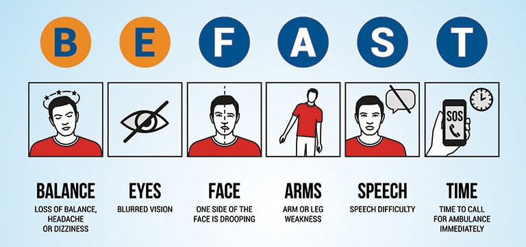 The American Heart Association‘s acronym BE FAST is also a useful way of identifying the signs and symptoms of a stroke. Any of the following symptoms should prompt immediate evaluation for a possible stroke: